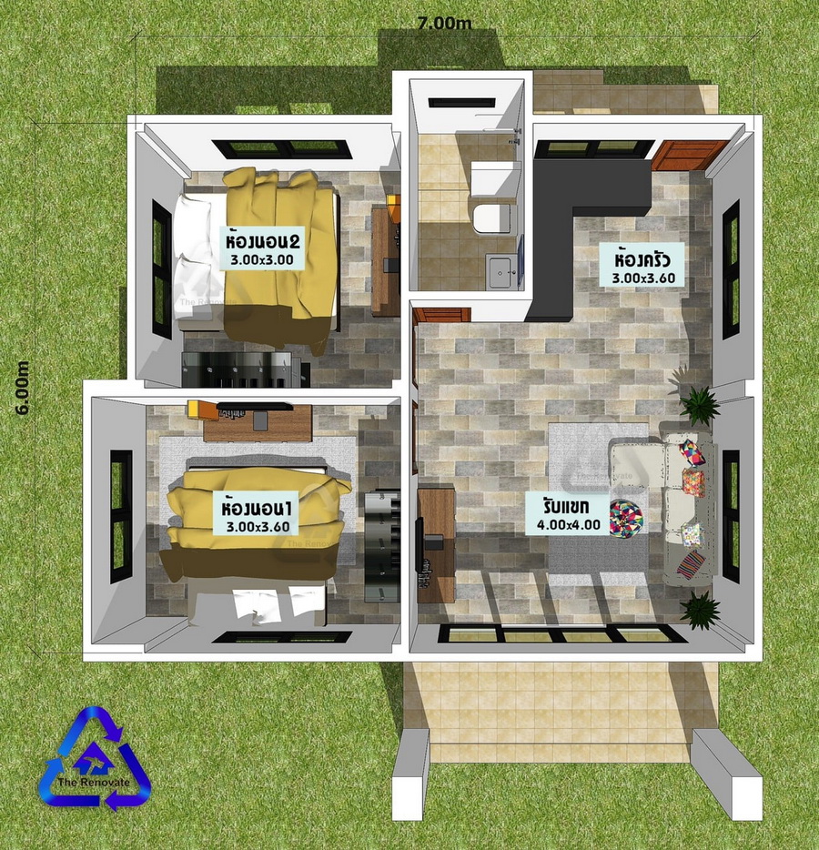 แบบบ้านสไตล์คอนเทมโพรารี ผลงานการออกแบบโดย The Renovate : รับเหมาก่อสร้าง และต่อเติม เป็นบ้านขนาดเล็กที่มีดีไซน์สวยงาม ภายในบ้านมีพื้นที่ใช้สอยที่เพียงพอต่อการใช้งาน เหมาะสำหรับเป็นบ้านสำหรับครอบครัวเริ่มต้นโดยเฉพาะ