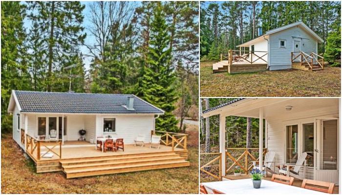 บ้านขนาดกะทัดรัดชั้นเดียวหลังนี้ มาในรูปแบบของบ้านยกพื้นสูงโดดเด่นด้วยรูปทรงบ้านหน้าจั่ว ตัวบ้านประกอบขึ้นจากไม้ทั้งหลังแต่งแต้มด้วยโทนสีขาวเรียบง่าย ปกคลุมด้วยหลังคากระเบื้องลอนสีเทารับกับสีของบ้าน พื้นที่รอบบ้านโอบล้อมไปด้วยต้นไม้และป่าเขาสีเขียวชอุ่ม ดูสดชื่นมีชีวิตชีวา
