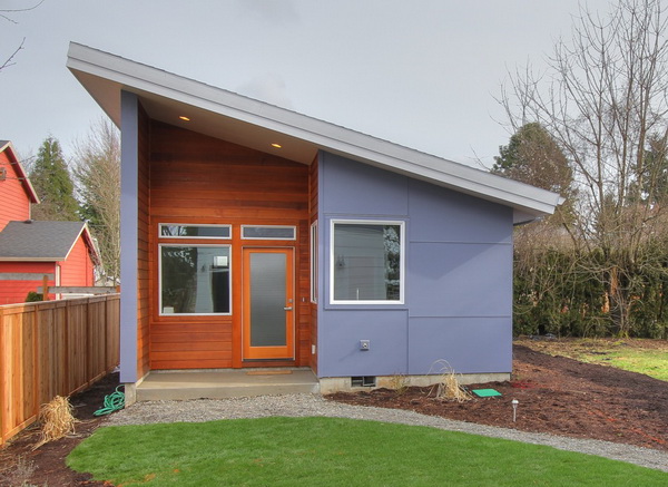 บ้านหลังนี้ออกแบบโดยใช้พื้นที่อย่างประหยัด คงไว้เพียงฟังก์ชั่นที่ใช้งานจริงๆ บ้านสีน้ำเงินพาสเทล ตกแต่งด้วยไม้และกระจก ปิดด้านบนด้วยทรงหลังคาเฉียงๆ ดูเรียบง่าย แต่ลงตัว น่ามองเป็นที่สุด