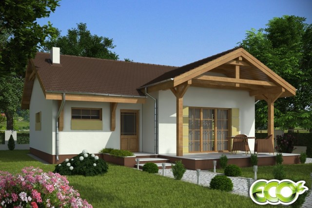 ตัวบ้านขนาดเล็กๆ เลือกใช้โครงสร้างคอนกรีตเป็นหลัง ตกแต่งด้วยเสาไม้และใช้โครงหลังคาจากไม้ ดูสวยงาม ตามแบบฉบับบ้านร่วมสมัย ถูกใจชาวไทยได้ไม่น้อย