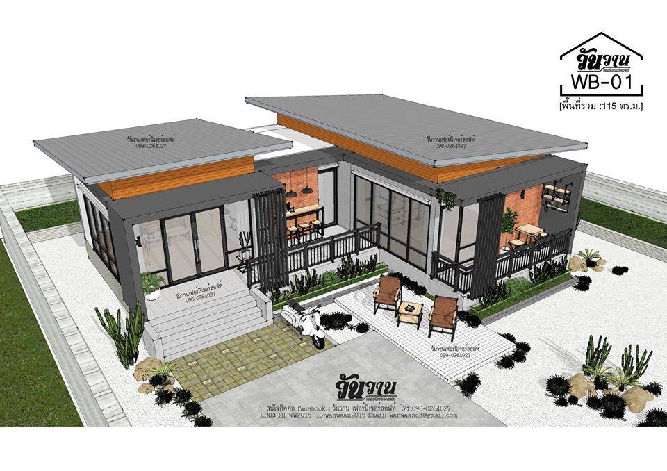 แบบบ้านหลังนี้ประกอบไปด้วย 2 ห้องนอน 1 ห้องน้ำ 1 ห้องครัว 1 ห้องรับแขก 1 เฉลียง พื้นที่ใช้สอย 115 ตารางเมตร หากเพื่อน ๆ ชาวเว็บต้องการข้อมูลเพิ่มเติมเกี่ยวกับแบบแปลนฉบับนี้ รบกวนสอบถามผู้ออกแบบโดยตรงผ่านช่องทางติดต่อด้านล่างนี้เลยนะครับ ^_^