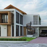 ตัวบ้านถูกดีไซน์ให้มีหน้าต่างบานใหญ่ เปิดรับแสงจากธรรมชาติและทำให้มองเห็นวิวภายนอกอย่างชัดเจน หลังคาทรงปั้นหยาปูด้วยกระเบื้องสีเทาเข้ม ตัดกับผนังภายนอกสีขาวสบายตา ด้านหน้ามีชานไม้ยื่นออกมาเป็นพื้นที่พักผ่อน มีเก้าอี้สำหรับนอนอาบแดด รับลมชมวิวธรรมชาติ นอกจากนั้นยังมีมุมรับประทานอาหารนอกบ้าน เหมาะกับการจัดงานปาร์ตี้เล็กๆ ด้วย