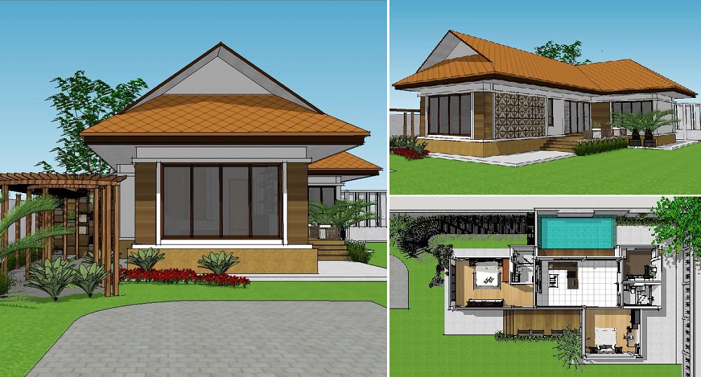 สวัสดีค่าเพื่อนๆ ชาวเว็บที่น่ารัก วันนี้ ในบ้าน จะพาไปชม แบบบ้านชั้นเดียว ก่อสร้างบนเนื้อที่ขนาดเล็ก แต่พร้อมไปด้วยฟังก์ชันใช้งานที่หลากหลาย ไม่ว่าจะเป็นพื้นที่พักผ่อนภายในบ้าน สนามหญ้าโล่งกว้าง และสระว่ายน้ำขนาดพอเหมาะ เป็นแบบบ้านของคุณคุณ นักบุญ ปีศาจ เราไปติดตามกันเลยค่ะ