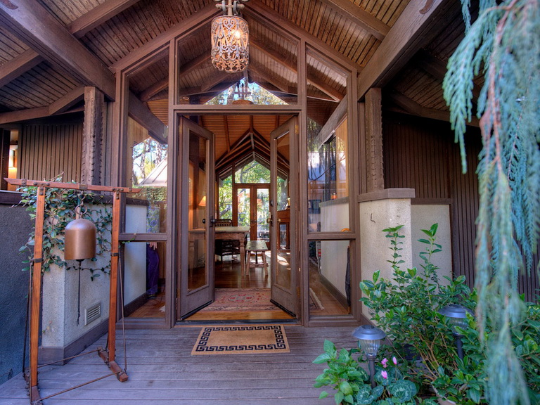 โครงสร้างของบ้านทำจากไม้ทั้งหมด หลังคาทรงจั่ว ความสูงไม่มากเท่าไหร่นัก บริเวณรอบๆเป็นสนามหญ้า เสริมความปลอดโปร่งให้กับภายในด้วยผนังและประตูแบบกระจกตรงด้านทางเข้า