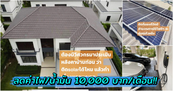 เช่นเดียวกันกับคุณ Warong Wanishkupalangkul ที่ได้ลงทุนไปกับ “โซล่าเซลล์ ระบบออนกริด” ราว ๆ 140,000 บาท ซึ่งใช้ไฟฟ้าไปกับระบบไฟฟ้าภายในบ้าน และรถยนต์ไฟฟ้า ทำให้เจ้าตัวประหยัดทั้งค่าไฟปกติ และค่าน้ำมันในแต่ละเดือนได้ร่วมหมื่นบาทเลย!