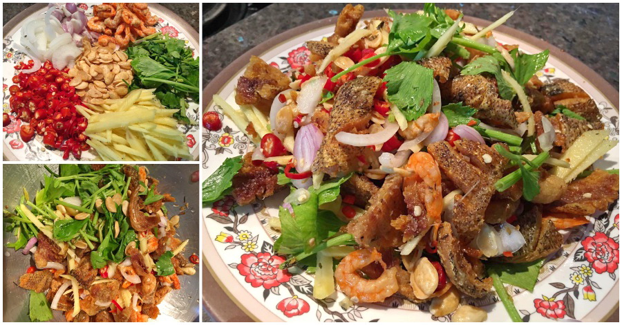 6. เมื่อเตรียมทำอย่างเสร็จแล้ว นำทุกอย่างมาคลุกเคล้าให้เข้ากัน จัดใส่จานเป็นเสร็จละค่า