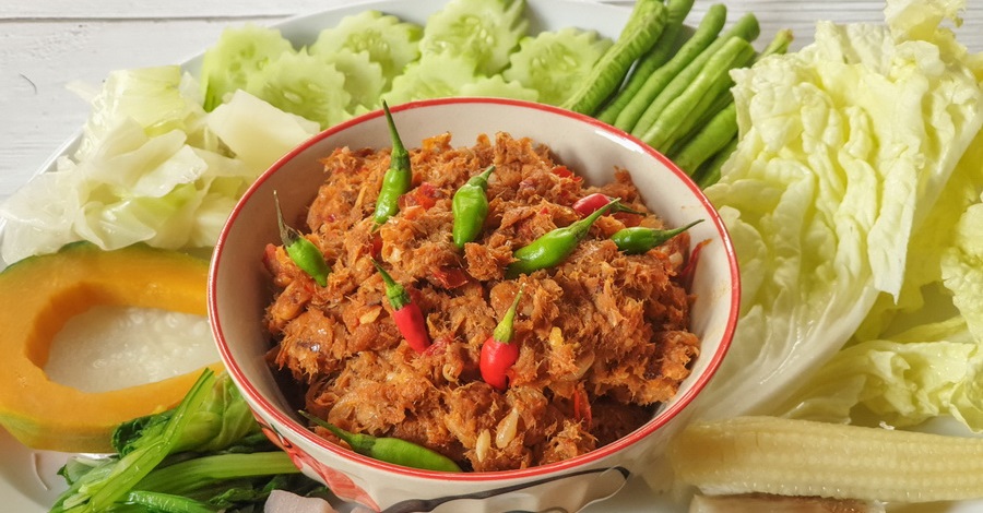 8. ตักน้ำพริกใส่ถ้วย เสิร์ฟพร้อมผักสด ผักต้ม กินกับข้าวสวยร้อนๆ หรือจะจิ้มกับข้าวเหนียวก็อร่อยไปอีกแบบนะคะ