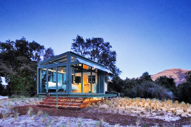 บ้านตากอากาศ โครงสร้างเหล็ก ตกแต่งด้วยกระจก ไอเดียเบื้องต้นปรับใช้ตกแต่งบ้านสวน ใต้ร่มเงาไม้