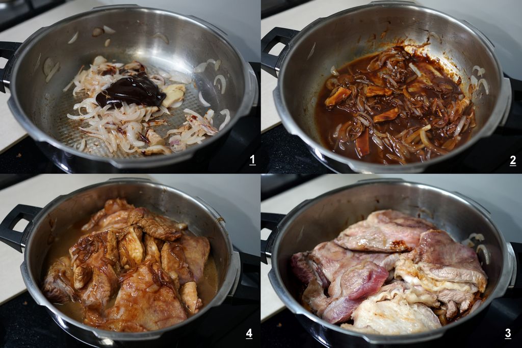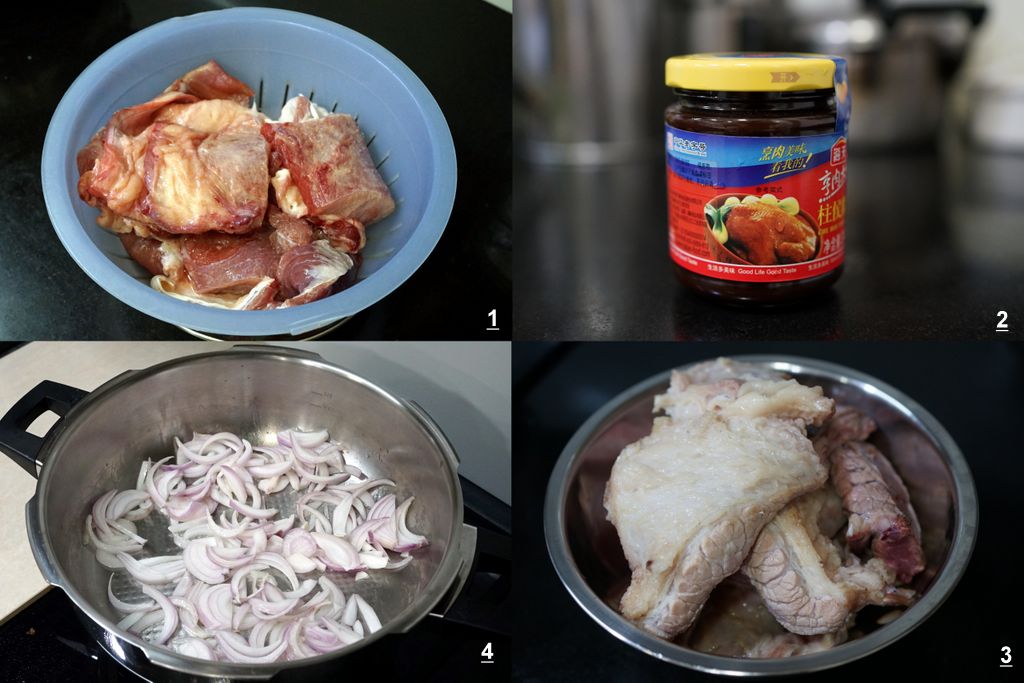 1. เอาเนื้อสามชั้นไปลวกก่อน จากนั้นเอาหอมแขกซอยนำไปผัด