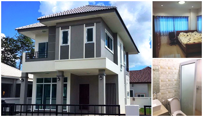 ลักษณะเป็นบ้านสองชั้นสไตล์โมเดิร์น รูปลักษณ์ภายนอกทันสมัย หลังคาทรงปั้นหยา ผนังใช้สีเทาไล่โทนอ่อน – เข้ม ใช้โทนสีขาวเข้าช่วยให้บ้านดูมีมิติมากขึ้น หน้าบ้านจะมีชานบ้าน และมีที่จอดรถในร่มเพื่อเอาใจคนรักรถอีกด้วย