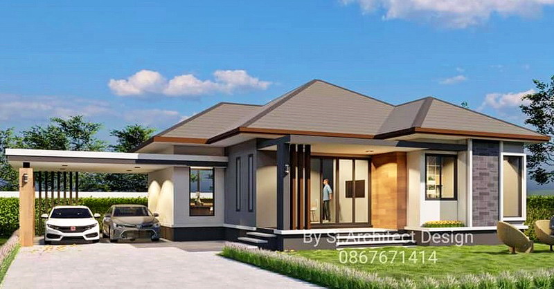 Read Moreแบบบ้านสไตล์คอนเทมโพรารี ดีไซน์หลังคาทรงปั้นหยา 3 ห้องนอน 2 ห้องน้ำ พื้นที่ 138 ตร.ม.