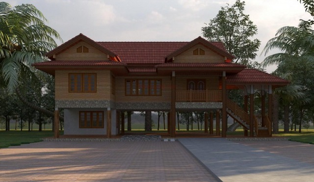 แบบบ้านสองชั้นทรงไทยร่วมสมัย สำหรับครอบครัวใหญ่ เข้ากับสภาพแวดล้อมแบบชนบท