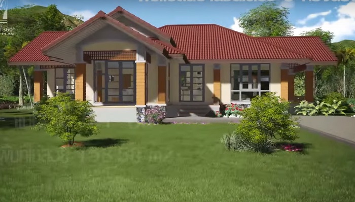 Read Moreแบบบ้านร่วมสมัย หลังคาทรงปั้นหยาสีแดง พร้อมการตกแต่งผนังกระจก โปร่งสบาย เพื่อการพักผ่อน
