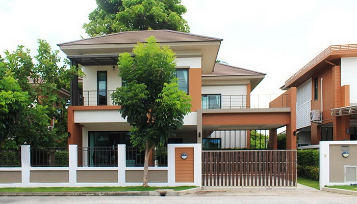 Read Moreแบบบ้านสองชั้นโทนสีส้ม ตกแต่งสไตล์ร่วมสมัย พร้อมระเบียงแสนโปร่งและที่จอดรถใต้ชายคา