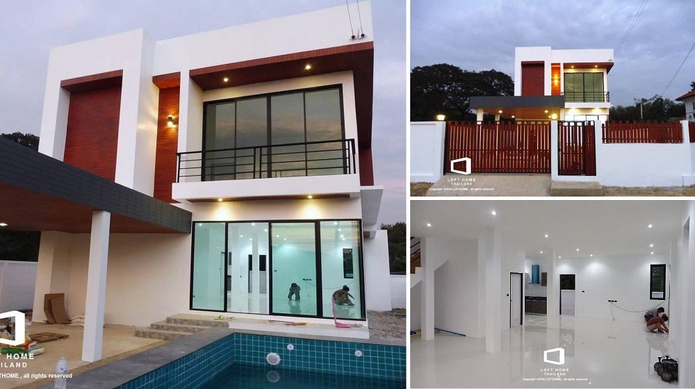 Read Moreบ้านสองชั้นสไตล์โมเดิร์นลอฟท์ โทนสีขาว รูปทรงกล่องสี่เหลี่ยม พร้อมสระว่ายน้ำขนาดพอเหมาะ