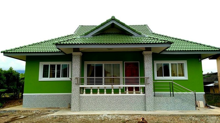 บ้านชั้นเดียวสไตล์โมเดิร์น โทนสีเขียวสดใส ดีไซน์เรียบง่ายลงตัว 3 ห้องนอน 1 ห้องน้ำ