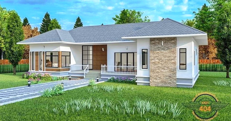 Read Moreบ้านหน้ากว้างชั้นเดียวสไตล์คอนเทมโพรารี มาพร้อมระเบียงกว้างหน้าบ้าน 3 ห้องนอน 2 ห้องน้ำ พื้นที่ 130 ตร.ม.