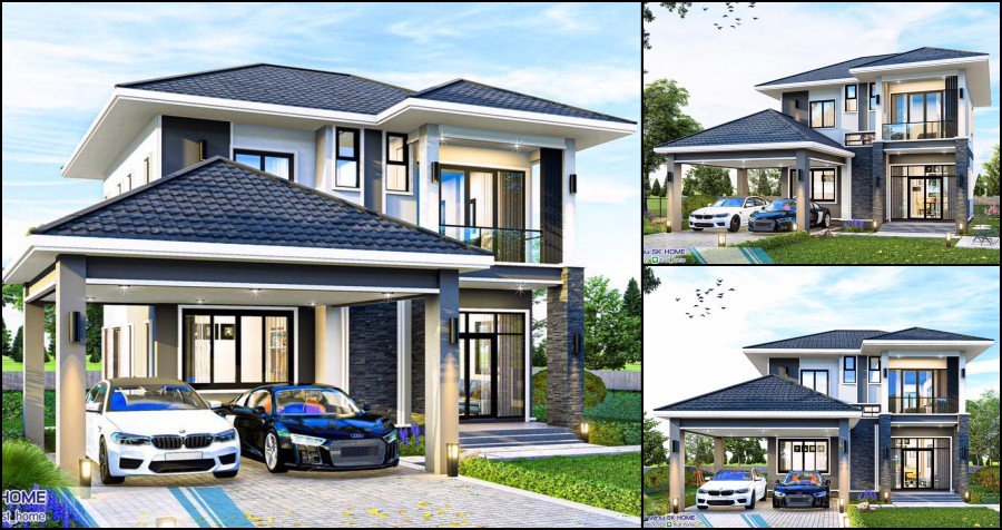 Read Moreแบบบ้านสไตล์ร่วมสมัยสองชั้น 4 ห้องนอน 3 ห้องน้ำ พร้อมระเบียงรับวิวชั้นสอง พื้นที่ใช้สอย 238 ตร.ม.