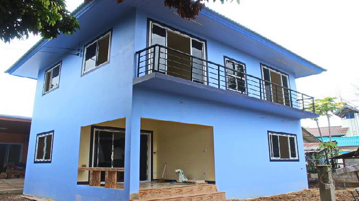 Read Moreบ้านสไตล์โมเดิร์น ตกแต่งภายนอกในโทนสีฟ้าอ่อน ขนาด 2 ชั้น 3 ห้องนอน 2 ห้องน้ำ ราคา 1.55 ล้านบาท