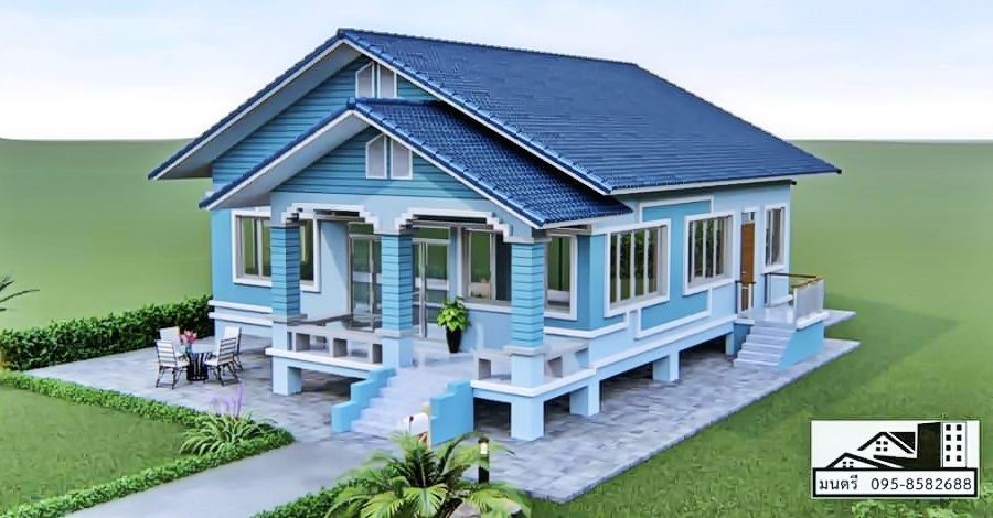 Read Moreแบบบ้านยกพื้นชั้นเดียว สไตล์คอจเทจ โทนสีฟ้าสบายตา 3 ห้องนอน 2 ห้องน้ำ งบก่อสร้าง 1.35 ล้านบาท