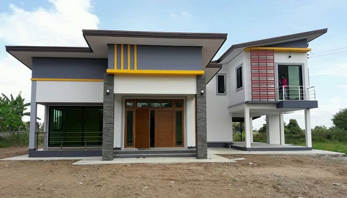 แบบบ้านชั้นครึ่ง สไตล์โมเดิร์น โดดเด่นเน้นสีสัน 3 ห้องนอน 2 ห้องน้ำ เหมาะกับครอบครัวขยาย