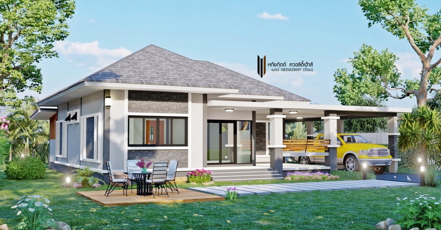 Read Moreแบบบ้านชั้นเดียวสไตล์คอนเทมโพรารี ตกแต่งงามสง่า 3 ห้องนอน 2 ห้องน้ำ พื้นที่ 82 ตร.ม.