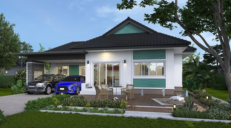 Read Moreบ้านชั้นเดียวราคาประหยัด โทนสีฟ้าหลังคาจั่วซ้อนชั้น สดใส เรียบง่าย สไตล์ชนบท