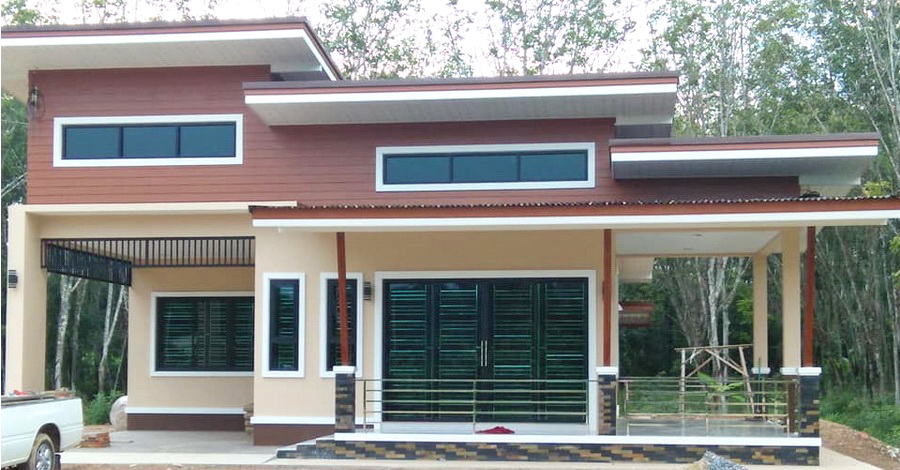 บ้านสไตล์โมเดิร์น ออกแบบหลังคาเล่นระดับ พร้อมระเบียงกว้างเพื่อการพักผ่อน ก่อสร้างด้วยงบ 1.5 ล้านบาท