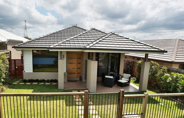 แบบบ้านสไตล์ร่วมสมัยโทนสีเทา เท่แบบเรียบๆ สะดุดตาด้วยหลังคาปั้นหยาสามชั้น