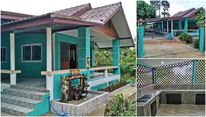 Read Moreบ้านแนวร่วมสมัยชั้นเดียว ตกแต่งในโทนสีเขียวมิ้นท์ พร้อมเฉลียงพักผ่อนและครัวไทยหลังบ้าน