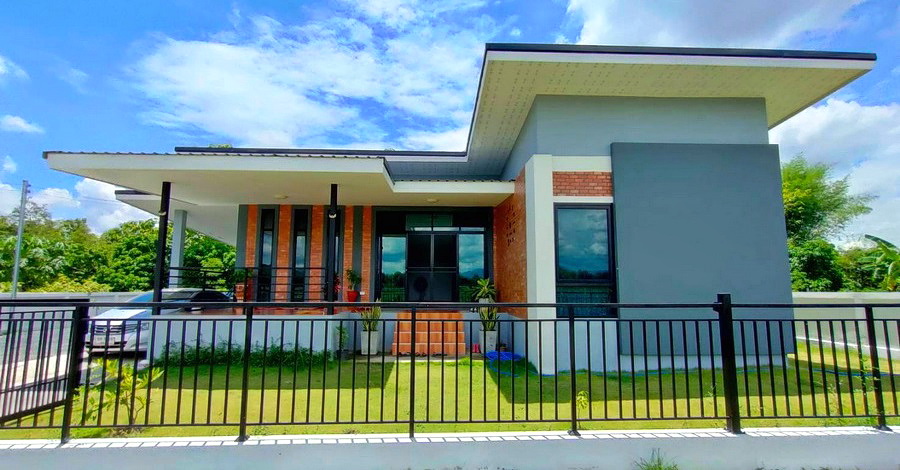 Read Moreบ้านสไตล์คอนเทมโพรารีชั้นเดียว โดดเด่นด้วยหลังคาทรงปั้นหยา พร้อมโทนสีสวยงาม 2 ห้องนอน 2 ห้องน้ำ