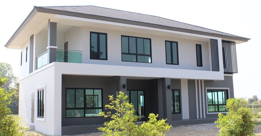 บ้านสไตล์คอนเทมโพรารีสองชั้น หลังคาทรงปั้นหยา 3 ห้องนอน 3 ห้องน้ำ พื้นที่ใช้สอย 260 ตร.ม.