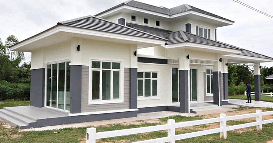บ้านสองชั้นโทนสีขาว ดีไซน์เรียบง่าย 5 ห้องนอน 2 ห้องน้ำ ขนาด 140 ตร.ม.