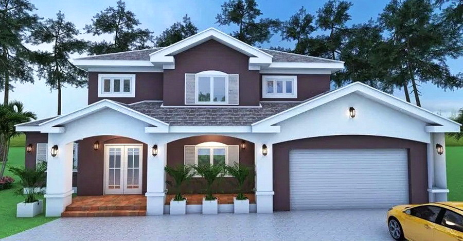 แบบบ้านสองชั้นสไตล์คอนเทมโพรารี 6 ห้องนอน 5 ห้องน้ำ พื้นที่ใช้สอยกว้างขวาง พร้อมที่จอดรถ