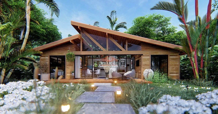 แบบบ้านโมเดิร์นหน้ากว้าง ตกแต่งผนังไม้ อบอุ่นเป็นธรรมชาติ 3 ห้องนอน 2 ห้องน้ำ พื้นที่ 103 ตร.ม.