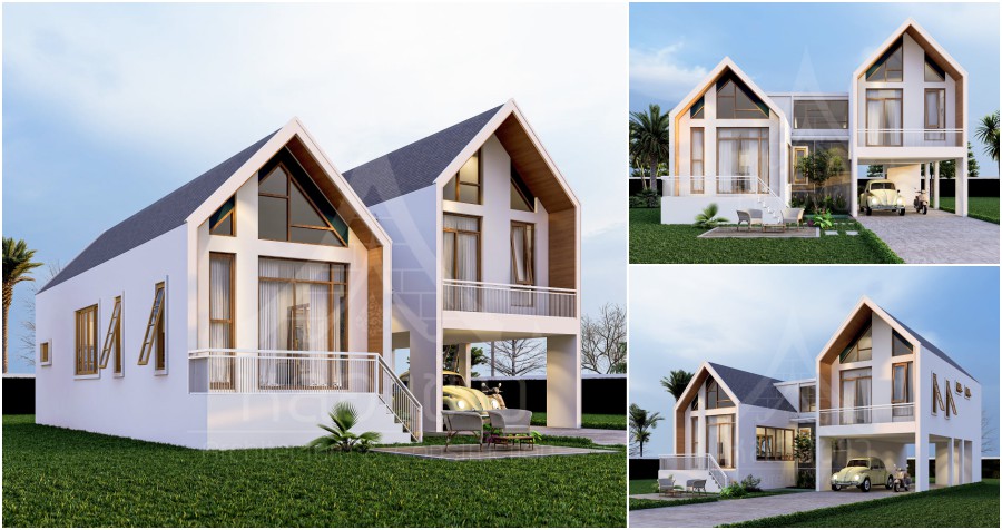 แบบบ้านชั้นครึ่งสไตล์นอร์ดิกทรงแฝด จากทีมงาน Lhong Khao...