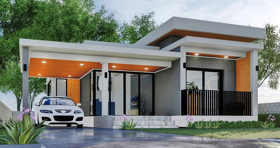 Read Moreแบบบ้านชั้นเดียวสไตล์โมเดิร์น ภายในโปร่งโล่งสบายด้วยกระจกบานใหญ่ 2 ห้องนอน 2 ห้องน้ำ พื้นที่ใช้สอย 120 ตร.ม.