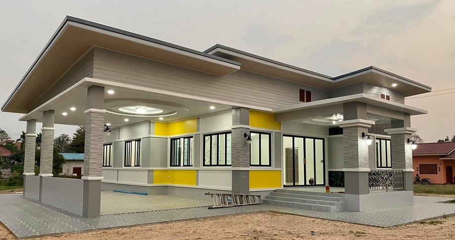 Read Moreบ้านชั้นเดียวสไตล์โมเดิร์น โทนสีเทาเหลือง หรูหรา ครบครัน 3 ห้องนอน 2 ห้องน้ำ พื้นที่ 230 ตร.ม.