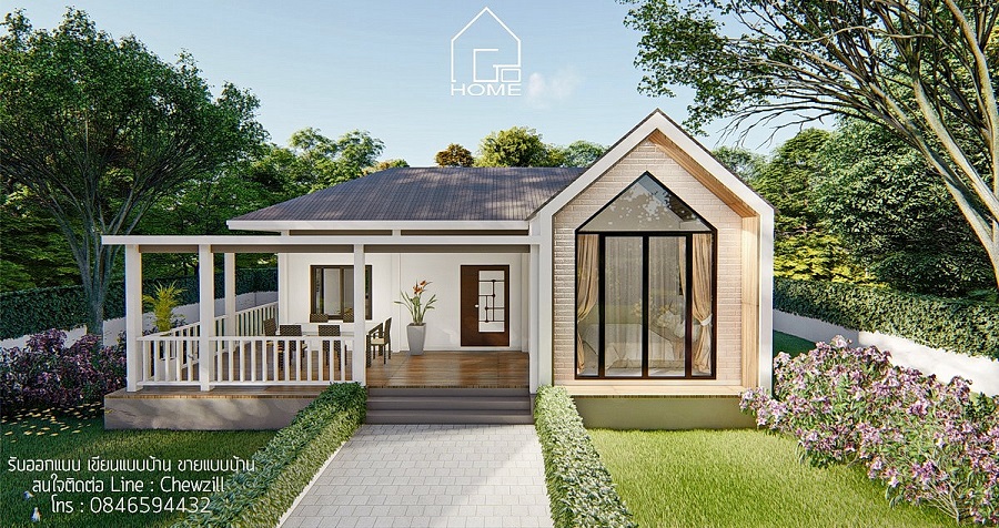 Read Moreแบบบ้านสไตล์นอร์ดิกผสมไทย ฟาซาดทรงจั่ว ระเบียงนั่งเล่น 3 ห้องนอน 2 ห้องน้ำ พื้นที่ 102 ตร.ม.