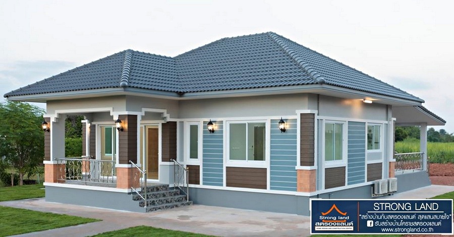 บ้านโมเดิร์นชั้นเดียว โทนสีฟ้า-ขาว 3 ห้องนอน 2 ห้องน้ำ ฟังก์ชันครบครัน