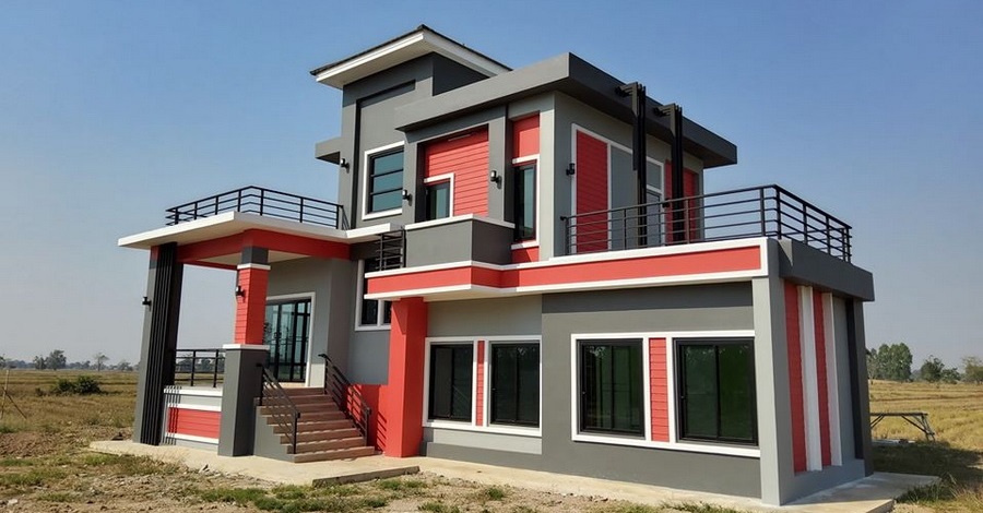 Read Moreบ้านชั้นครึ่งสไตล์โมเดิร์น ตกแต่งโทนสีเทาแดง 3 ห้องนอน 2 ห้องน้ำ พื้นที่ 190 ตร.ม.