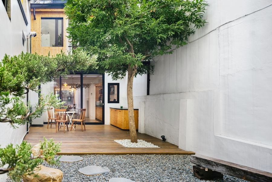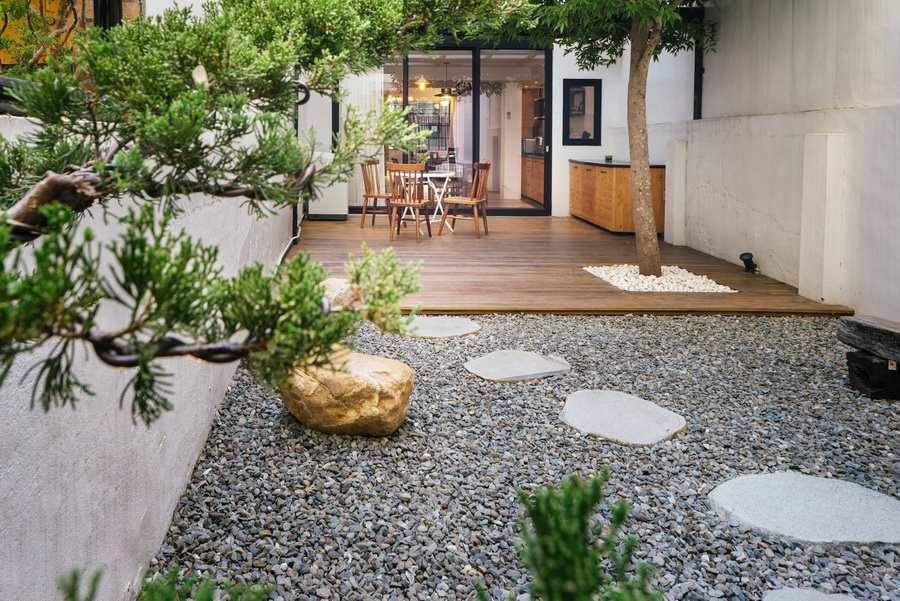 ความพิเศษอีกอย่างหนึ่งของบ้านหลังนี้ก็คือเฉลียงและสวนหินหลังบ้าน เป็นพื้นที่พักผ่อนที่มีทั้งความเป็นส่วนตัวและบรรยากาศที่โปร่งโล่งกว้างขวาง รายล้อมไปด้วยธรรมชาติกลางแจ้งสุดผ่อนคลาย