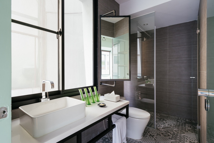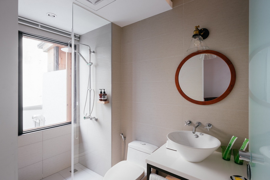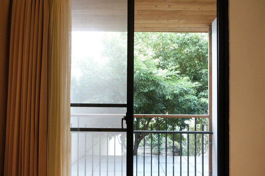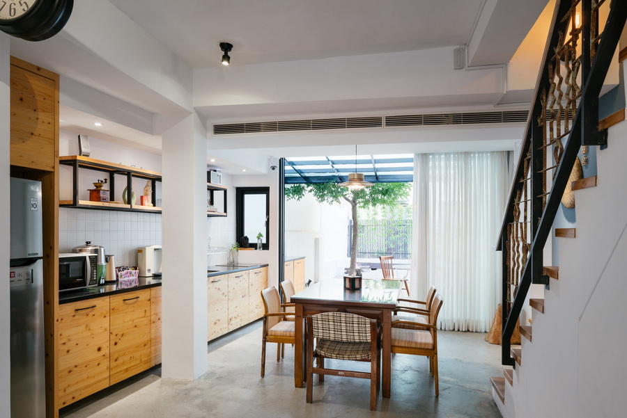 แม้ว่าจะเป็นอาคารที่มีหน้ากว้างเพียง 4 เมตร แต่หน้าต่างกระจกบานใหญ่ที่ถูกติดตั้งไว้ตามผนังรอบ ๆ บ้านก็ช่วยให้พื้นที่ภายในดูโปร่งกว้างและสะดวกสบายกว่าที่ตาเห็น