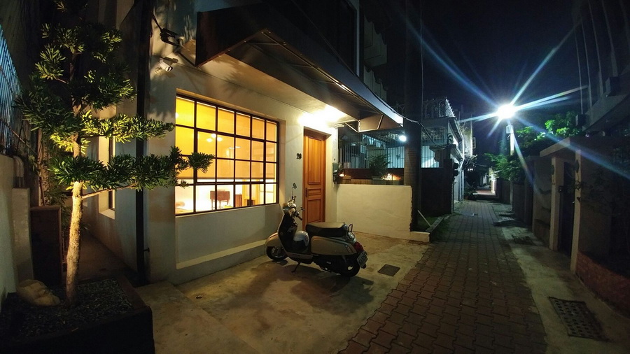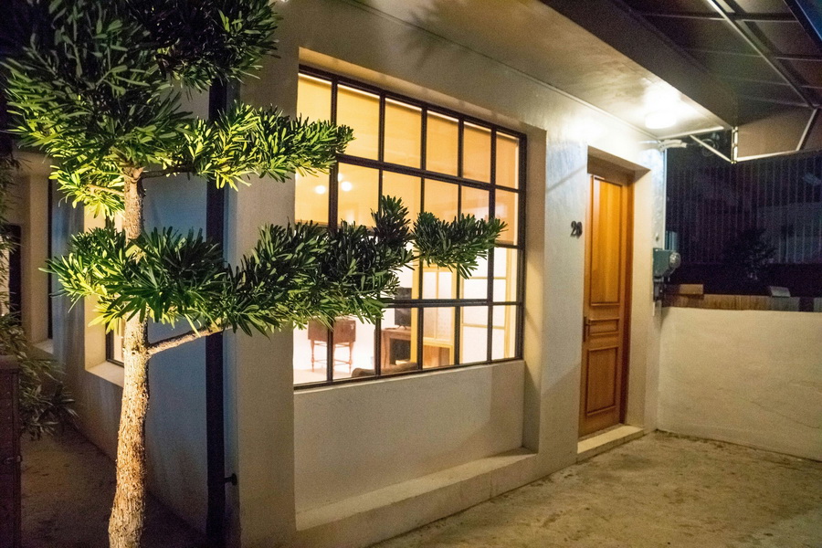 การตกแต่งภายนอกของบ้านหลังนี้จะเน้นความเรียบง่ายด้วยตัวสีขาว เสริมความโดดเด่นด้วยประตูไม้แท้ ให้กลิ่นอายดั้งเดิมแบบวินเทจ สร้างภาพลักษณ์ที่โดดเด่นสะดุดต่แก่ผู้คนที่ผ่านไปมา