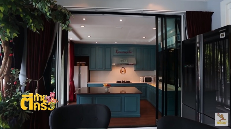 ห้องครัวในบ้านของคุณธัญญ่ามีทั้งหมด 2 ห้อง ห้องแรกเป็นครัวในบ้านที่ยังคงเน้นความหรูหรา ติดกับโต๊ะทานข้าวขนาดใหญ่ รองรับคนได้มากมาย และยังเป็นมุมปาร์ตี้ประจำบ้านอีกด้วย