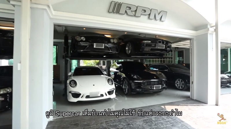 ในขณะที่อีกฝั่งคือโรงจอดรถขนาดใหญ่ที่มีความคล้ายคลึงกับโชว์รูมรถเลยทีเดียว เนื่องจากมีรถหรูมากกว่า 10 คันเลยทีเดียว แถมยังมีซุปเปอร์คาร์ด้วยนะ