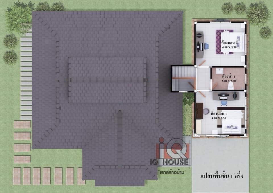 แบบบ้านชั้นครึ่งทรงไทยประยุกต์ ผลงานการออกแบบโดยทีมงาน IQ HOUSE จากจังหวัดเชียงราย ดีไซน์โดดเด่นเล่นระดับ สะดุดตาด้วยการออกแบบที่พิถีพิถัน สะท้อนเอกลักษณ์ความดั้งเดิมแบบไทย ๆ บนรูปทรงบ้านที่ทันสมัย ฟังก์ชันการใช้งานครบครัน