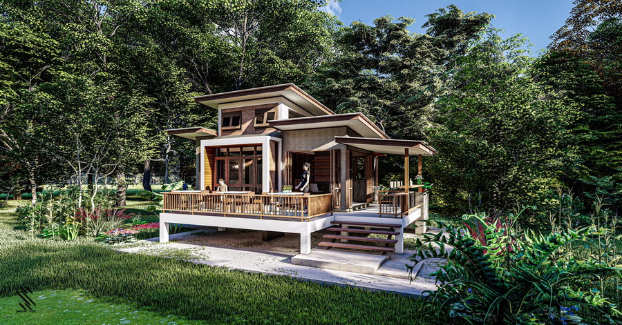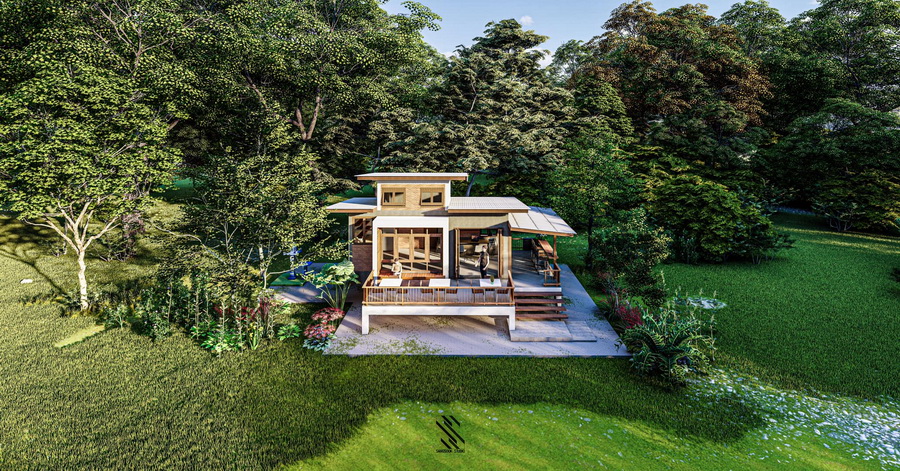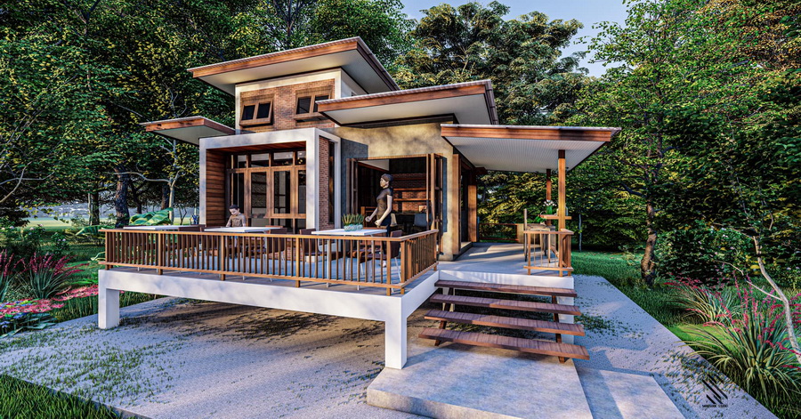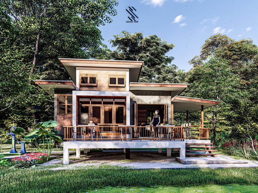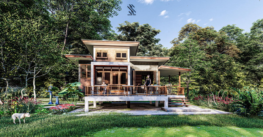 แบบบ้านสวนสไตล์โมเดิร์นลอฟท์หลังนี้ มีพื้นที่ใช้สอยทั้งหมดประมาณ 80 ตารางเมตร มีเฉลียงกว้างหน้าบ้านเพื่ออรรถประโยชน์ ภายในมีที่พักอาศัยและชั้นลอยอีกด้วย งบประมาณในการก่อสร้างเริ่มต้นที่ประมาณ 1.2 ล้านบาท