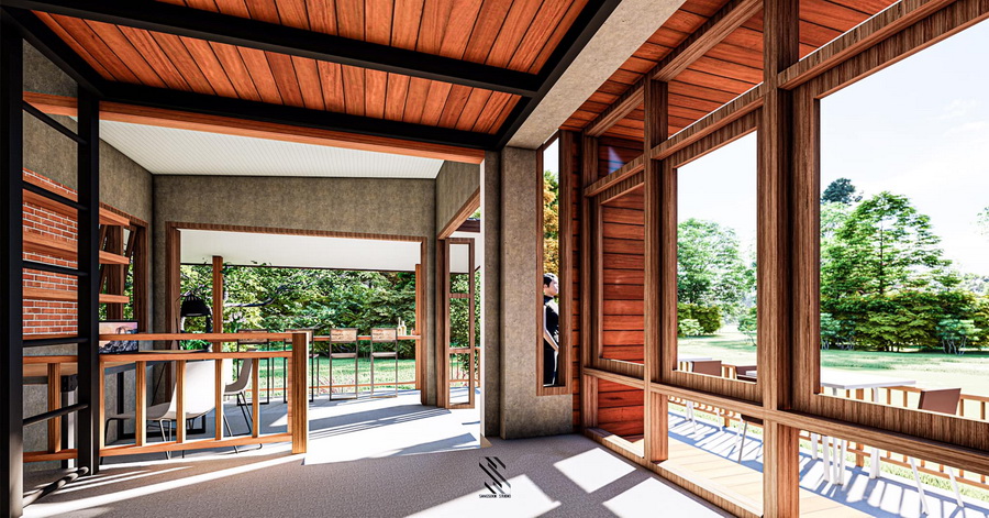 แบบบ้านสวนสไตล์โมเดิร์นลอฟท์ ผลงานการออกแบบโดยทีมสถาปนิกจาก Sangsook Studio – สร้างสุข สตูดิโอ บ้านที่มีพื้นฐานการออกแบบในแนวโมเดิร์นที่ทันสมัย ผสานการออกแบบที่ให้กลิ่นอายสวยดิบ พร้อมกับการดีไซน์พื้นที่ใช้สอยที่กว้างขวางโดยเฉพาะภายนอกตัวบ้าน