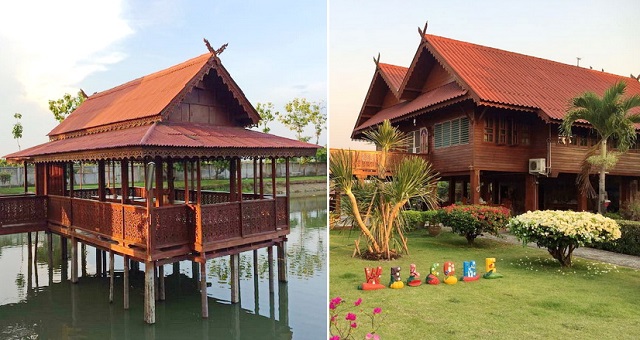 โครงสร้างของบ้านจะเป็นไม้ มีใต้ถุนสูงโปร่ง หลังคาบ้านเลือกใช้ทรงหน้าจั่วมุงด้วยกระเบื้องโทนสีแดง มีระเบียงโปร่งที่ชั้นสอง พร้อมด้วยซุ้มประตูทางเข้าแบบบ้านไทยโบราณ พื้นที่รอบๆ จัดสวนอย่างเป็นระเบียบ สีเขียวของต้นไม้ใบหญ้าตัดกับสีน้ำตาลของตัวบ้านได้อย่างกลมกลืน
